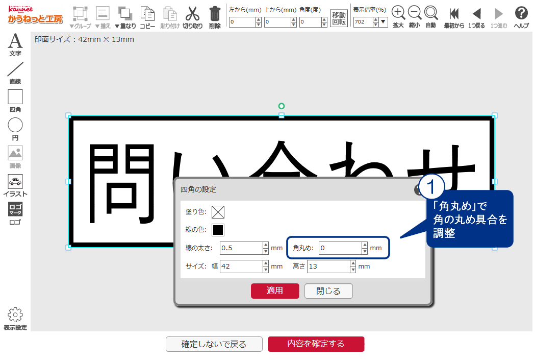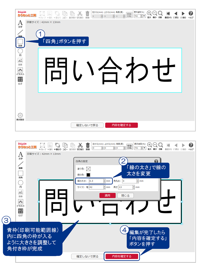枠が少しでもはみ出ると「内容を確定する」ボタンを押したときに「はみ出しエラー」になってしまいます。