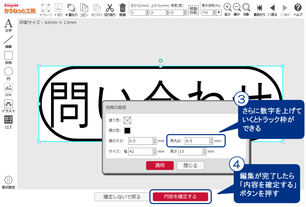 角付き枠を角丸枠・トラック枠へ変更することができます。